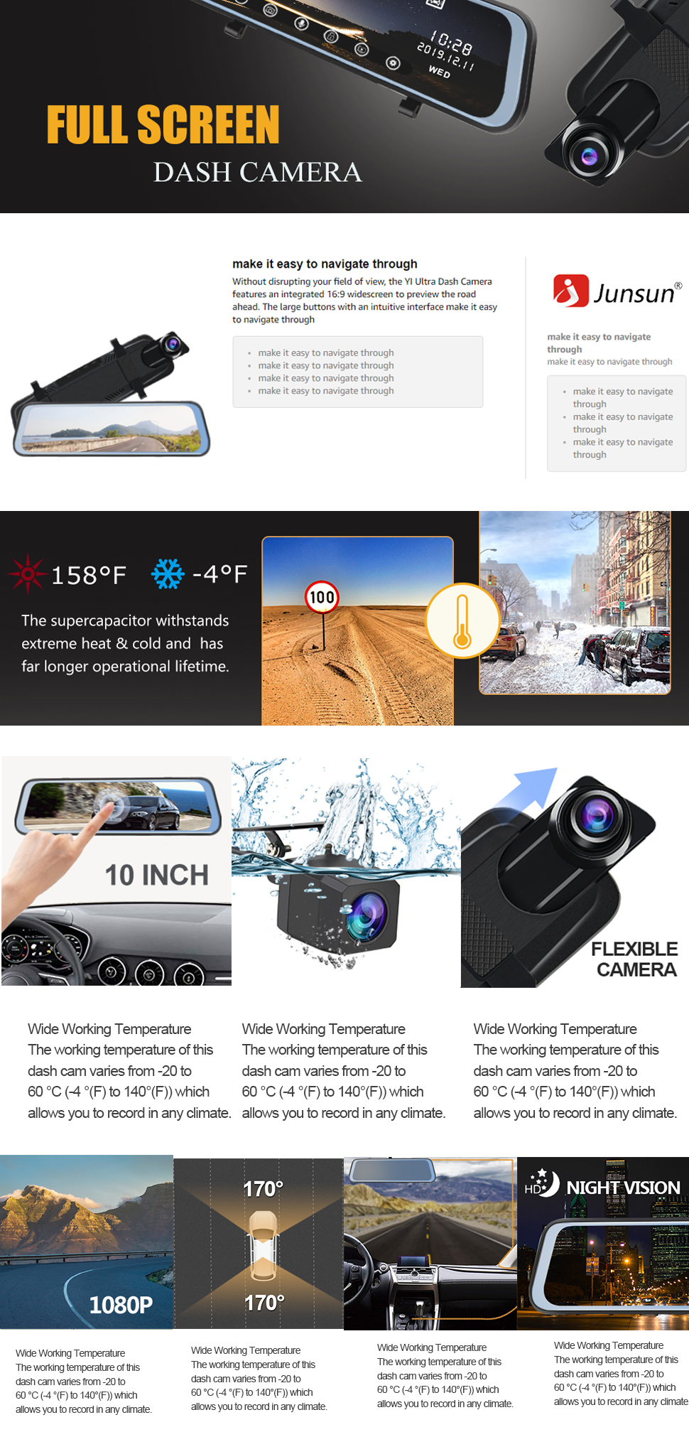 Lens angle: Front 170°Rear 140°