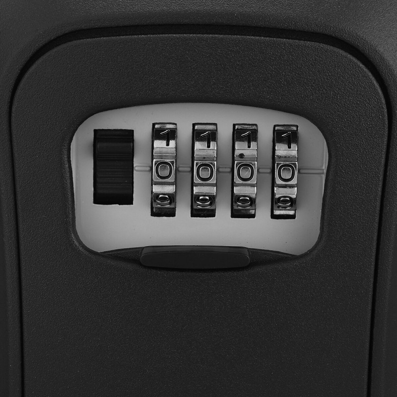 Wall Mounted Key Storage Security Lock. It has enough room to hold up keys inside. The wall-mounted key safe has been built to last, it has a simple design to complement any decor. This key safe comes with the necessary fixtures and fittings for mounting. It is made of hard and resilient materials that are resistant to the force of a hammer, sawing, prying and the weather. The four-digit combination is easy to use and resets whenever you need to change it .